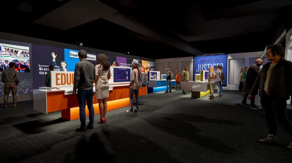 Pillars of Justice places visitors at the center of the narrative. Through immersive media, digital installations, and responsive environments, guests can explore pivotal moments of the Civil Rights Movement while drawing direct lines to the challenges and movements of today. These spaces are built to incorporate visitors’ lived experience and encourage deeper reflection through active participation.